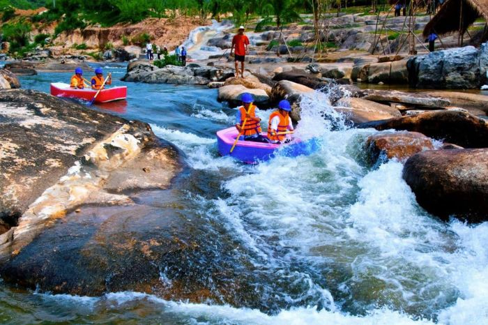 Tại đây, bạn có thể tổ chức các hoạt động cắm trại, team building, picnic cùng bạn bè, gia đình… Bên cạnh đó, bạn có thể tham gia vào các trò chơi như chèo xuồng cao su vượt thác, chơi trượt co, bắn súng đạn sơn, check in rừng hoa anh đào…