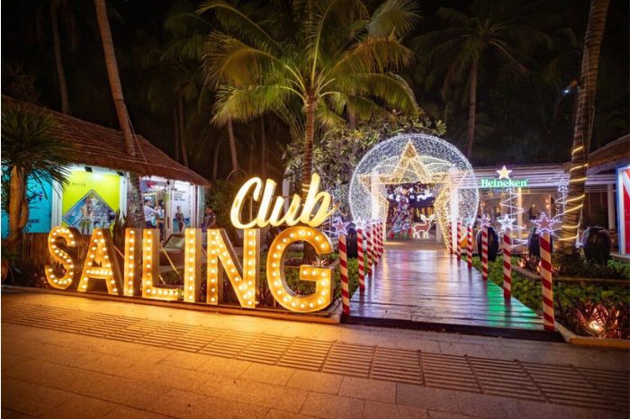 Khi mặt trời khuất dần, Sailing Club trở thành nơi ăn uống tinh tế với ánh đèn lung linh và những bàn ăn được trang trí đẹp mắt. Càng về khuya, nơi đây biến đổi thành một quán bar và câu lạc bộ đêm sôi động.