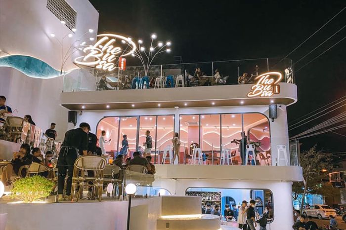 The Busa Park được bảo phủ bởi tone màu xanh mát, bức tường uốn lượn tạo điểm nhấn tựa như con sóng vỗ về bờ. Phía bên trong quán được tô điểm bằng tone màu hồng nhẹ nhàng, nữ tính với nhiều góc check in cực đẹp.