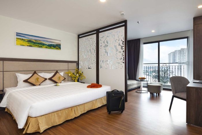 Tại đây có đủ các loại phòng: Deluxe, Deluxe Sea View, VIP để du khách lựa chọn. Ngoài ra, khách sạn đường Bắc Sơn Nha Trang còn có hồ bơi ngoài trời thiết kế đẹp, phòng gym/fitness room, nhà hàng phục vụ buffet sáng, dịch vụ lễ tân 24h.