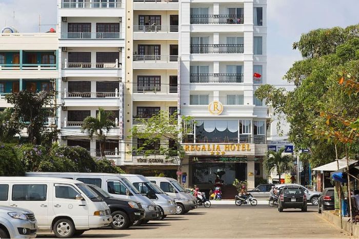 Regalia Hotel là khách sạn hồ bơi Nha Trang nằm ở trung tâm thành phố, cách biển Nha Trang khoảng 3 phút đi bộ. Điểm nhấn của khách sạn chính là hồ bơi ngoài trời nằm trên tầng thượng, nơi du khách có thể phóng tầm mắt nhìn cảnh biển xinh đẹp.