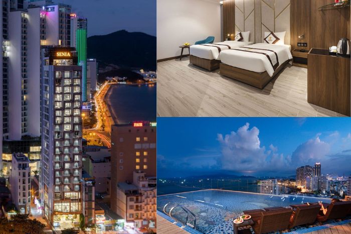Senia Hotel là khách sạn Nha Trang có hồ bơi vô cực nằm ngay trung tâm. Toàn bộ khách sạn có tổng cộng 112 phòng được phân bố thành 5 hạng phòng khác nhau, trang bị đầy đủ các tiện nghi cần thiết.