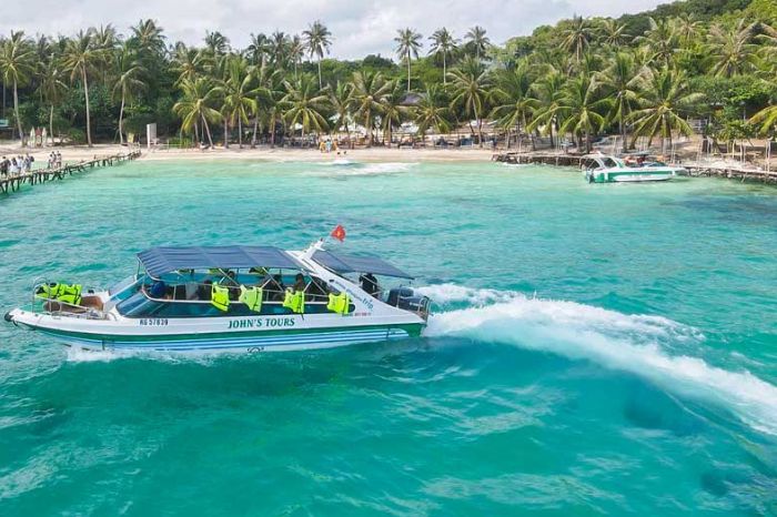 Một phương tiện không thể thiếu khi tham quan các địa điểm du lịch ở Phú Quốc. Tàu cao tốc và cano là 2 phương tiện di chuyển trên biển, giúp bạn đến các hòn đảo nhanh chóng.