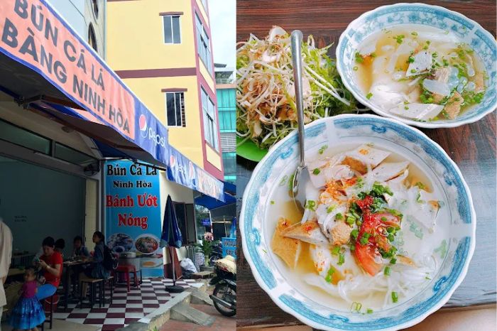 Thêm quán bún cá nổi tiếng ở Nha Trang khác chuẩn vị cho bạn thưởng thức là bún cá lá dầm Cây Bàng. Đây là một quán bún cá bình dân chuẩn vị Nha Trang được nhiều người thích.
