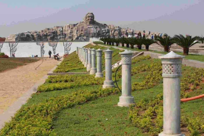 Bên cạnh tượng chính thì các khối tượng khác được làm từ đá hoa cương, chạy theo hình cánh cung rộng 120m. Công trình to lớn này được xây dựng từ hơn 20.000 tấn đá vận chuyển về từ Bình Định.