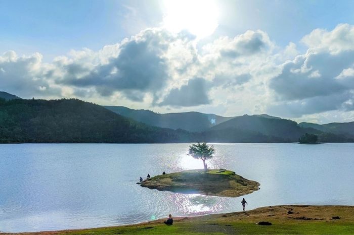 Vào những ngày đẹp trời, tượng đài soi bóng xuống mặt nước lung linh, tô điểm cho không gian thêm thơ mộng. Đặt chân đến đây, du khách sẽ cảm thấy yên bình, thư giãn.